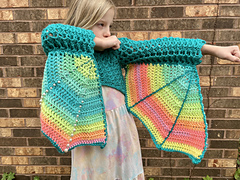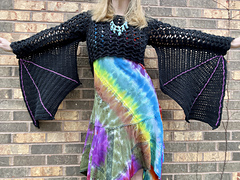 Bat wings or dragon wings? You decide with this spectacular winged top! Crochet for your baby bats and for your adult friends, as well -- this pattern is made-to-measure: all sizes, any yarn weight. Let your imagination soar in the details: make wing details with boutique or glow yarn, add beads or crystals, add snaps to make the wings detach! The Nightfall Top can be made any length from crop to dress, and there is an optional hi-lo for an asymmetrical hem.