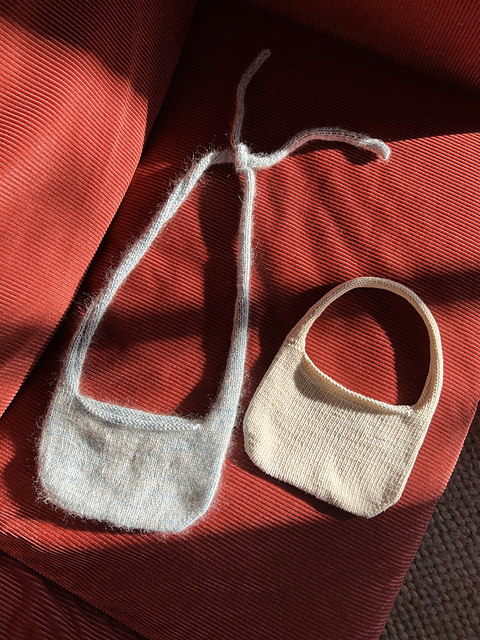 The Book Bag is a charming little beginner-friendly knit for carrying your favourite reads and other everyday essentials. It is worked in stockinette stitch and comes in a shoulder bag and a crossbody tied straps version.