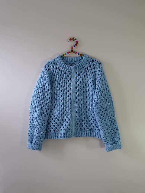 Crochet pattern to create my cardigan with a zip, in a bomber style.