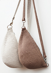 The bag features a sleek, minimalist silhouette with clean lines, crocheted in neutral or earthy tones for a contemporary look.