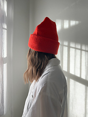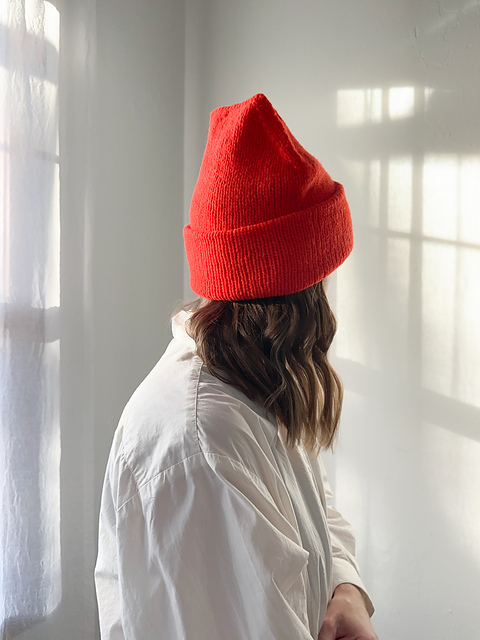 The North Shore Beanie is a timeless hat that features a triple brim for added warmth. It is knitted from the bottom up, showcasing a minimal yet decorative decrease on either side, while the front and back maintain stockinette.