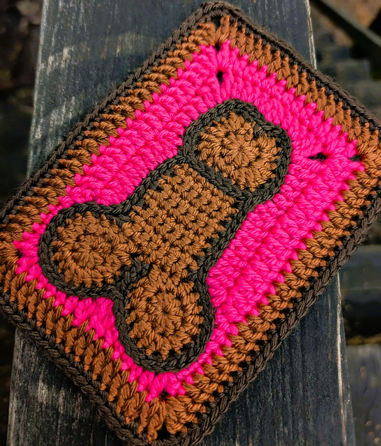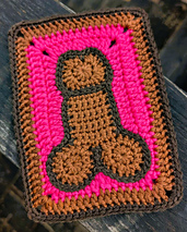 The Frank'n Beans pattern Is a penis applique inside a Granny rectangle. The Granny rectangle is crocheted around the applique, it is all one piece. Applique can be used on it's own if you prefer.