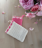 Any worsted weight 100% cotton yarn #4 (Aran/10ply), approximately 90 yds (82 m) in your main colour and 6.5 yds (6 m) for the hearts in a contrasting colour. Pictured: Lionbrand 24/7 Cotton in Pink and White.