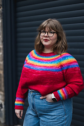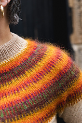 Kintra is a top-down, round-yoke sweater worked in 1x1 colourwork. The yoke is finished with raglan increases to improve fit and short rows. All sizes can use between 2 and 25 colours for this pattern, making it perfect for advents or scraps!