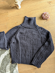 Black sweater: Les Garcons British DK (263 yd/240 m per 100g) in color Moira’s Black Rose, 4 (4, 4, 5) (5, 5, 6) 6 skeins.