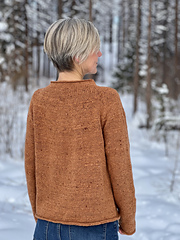 It is knit seamlessly from the top down in the round, starting with the collar. The yoke shaping is neither raglan nor round; it’s a bit of both!