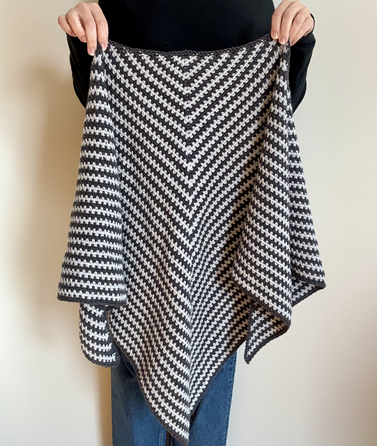 This simple crochet shawl pattern uses the linen stitch. The shawl can be made with any size yarn or hook, The sizes and gauge given are a guideline.