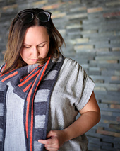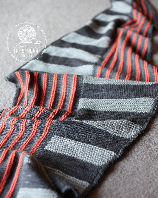 *This Scarf explores texture, colour and direction and has taken inspiration from Entrelac knitting but with a fresh spin!