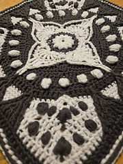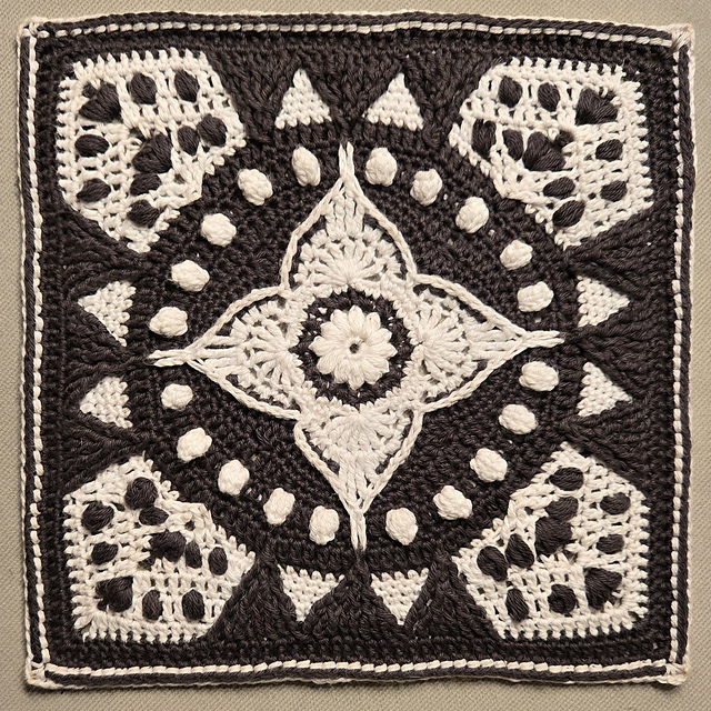 A block designed to compliment my An·tic·i·pa·tion pattern, it is also designed to be interchangeable in Coddiwomple. Scrap and leftover yarns were used to design this block requiring approximately 172 total yards of yarn.