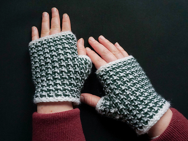Use this Tunisian crochet houndstooth pattern to make elegant mittens with a perfect fit due to the thumb gusset construction.
