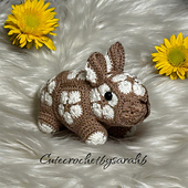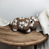 The finishedRabbit, when worked in 4ply yarn, will measure approximately 8" (20cm) nose to bum 4" (9cm) high. This will of course vary with weights of yarn and hook/tension. For a larger one work in double knit, aran or chunky.