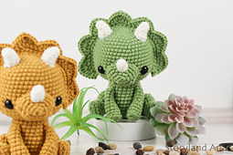 -Worsted-weight yarn (4-ply) in green and cream. (The U.K. equivalent is Aran, and AUS/NZ is 8 ply.) For my triceratops, I used Hobby Lobby’s I Love This Yarn in the colors “Mid Green” and “Ivory”.