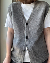 * The Paul Vest is worked top-down in stockinette stitch. First, the left and right shoulders are worked separately, then joined into one piece. Stitches are picked up for the back, then again for the right and left fronts. German Short Rows shape the shoulders for a better fit. Once all sections are complete, they are joined and worked straight. Stitches are then picked up along the armholes to work the folded edge in 1x1 rib in the round, which is then attached. Next, stitches are picked up for the folded neckline in 2x2 rib, worked back and forth, and attached. Finally, the right and left front edges are worked in double knitting with buttonholes.