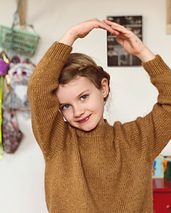 No Frills Sweater Junior is a simple raglan sweater with neckline shaping at the front. The No Frills Sweater Junior is worked from the top down, which makes it easy to try it on the child along the way. If you want to make sure that the rib neck edge keeps it shape over time, you can sew a thin elastic thread along the edge.
