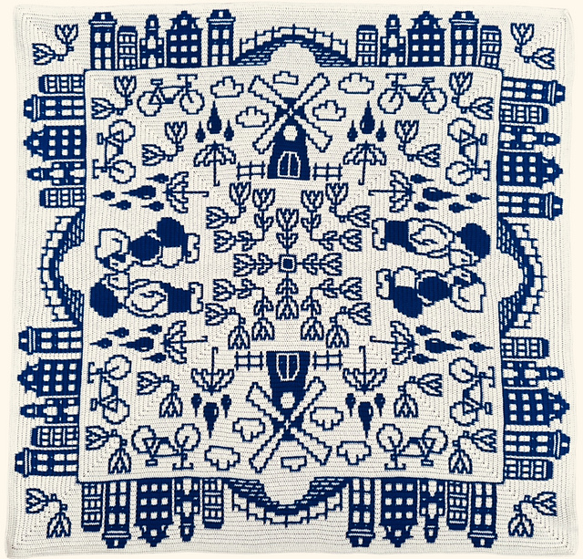 Dit patroon voor een deken met Nederlands thema is gemaakt om te haken in overlay mozaïek techniek.
