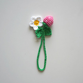 This delicate and charming design uses very little yarn, making it the perfect scrap yarn project. It’s also an instant-gratification project, as it works up in no time and requires sewing only for the stem to the strawberry. Featuring a cute strawberry fruit and a long stem with two leaves and a pretty t5 petal white flower, it adds a touch of yarn, nature, and whimsy to any book.