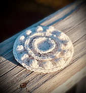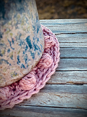 This pattern is made in worsted weight yarn with a 4.5mm hook. I think a synthetic or plant fiber is best for a coaster, as you will want it to be easy care. This coaster is worked in the round featuring the single and double crochet stitch. Work increases every round incorporating textured elements by working into rounds below your current round. You end with a decorative bobble edging with a ribbed border. Gauge is not crucial in such a small piece.