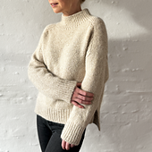 Arches Sweater is an oversize sweater with dropped saddle shoulders, made with highlighted increases. The characteristic increases add an elegant detail to the minimalistic design. Slits are made in the sides and the rib is made longer on the back piece than on the front piece.