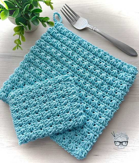 If you're looking for the perfect kitchen set, this is it! The Petoskey Hot Pad & Dish Sponge patterns are so versatile, and useful! Both patterns work up in a flash, and the double thickness provides great protection when using with a hot dish, or when using the dish sponge to clean up. The hot pad is a generous size and can be use as a hot pad or a trivet! The bonus dish sponge pattern is a wonderful way to use up scraps of cotton yarn, and you'll never have to buy a sponge again! Simply toss in the washer, and reuse again and again! Cotton yarn is best for this project. Pattern is rated as an advanced beginner level. Make sets for gifts, and for yourself! The possibilities are endless. If you are making both items, you will need approximately 185 yards of cotton yarn.