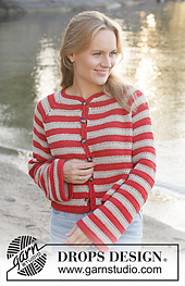 **Crocheted jacket in DROPS Cotton Light. The piece is worked top down with raglan and stripes. Sizes S - XXXL.**