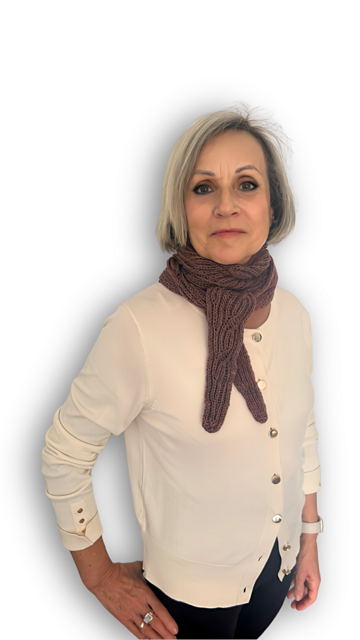 This scarf is constructed side to side, meaning that we start at one point and finish at the other. Starting with an i-cord tab cast-on (which will be the border of the shawl), the shawl will grow along the left edge in the first increase section to later decrease back down to the initial stitch count in the second section. The whole shawl is worked in brioche stitch worked flat in a single colour which mimics cables, made with only brioche knit stitches, increases and right-leaning decreases.