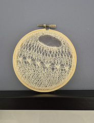 A beautiful and delicate piece of textile art. Pretty lace stitch patterns, short row shaping and open space combine to make this light and airy piece.