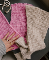 The Stay Toasty Scarf is all about texture, style, and—most importantly—keeping you warm. This design features a beautifully structured stitch pattern that is fully reversible, it adds both depth and squishiness to the fabric. The textured stitch pattern reminded me of the classic waffle texture—hence the name! This is the kind of scarf I envision grabbing when I want to layer up for a crisp morning walk, a coffee run, or when I just want to add a little extra something to my outfit.