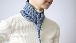 The Kleiner scarf is an easy-to-knit stash-bustering project. This little item is perfect for spring, transition of seasons and slightly chilly nights. It has a hole at one end that allows you to wrap it up elegantly without tying it. The scarf reaches around the neck once. This design was inspired by the PERLA yarn from LAMANA in Germany; Kleiner means small in German. It is worked first in the Crossed stockinette stitch with increases, then the Woven horizontal herringbone pattern is worked using larger needle with decreases. Finally, the end is split into knitted to make a hole, then rejoined to be finished with decreases.