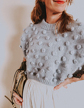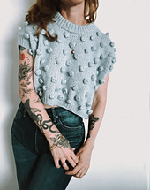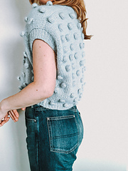 This cute, boxy crop features oversized bobbles and a folded neckline. The pattern is knit from the top down, starting with the back knit flat to the armhole split. Then shoulders are picked up and