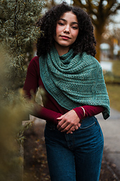 ### **Pattern Details** *Please see photo album for schematic and flatlay photos, Soft Current is a simple rectangle knit flat then folded in half and seamed 2-4" at one corner. Simple and easy.*