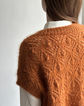 Thea Slipover is an oversize vest with a short fit. It is spacious, deliciously soft and with a fine lace pattern on the front and back. Thea Slipover is worked from the bottom up on a circular needle. At the armholes, the slipover is divided into a front and back piece, which are knitted separately back and forth on the circular needle. Finally, knit rib edges in the neck opening and armholes.