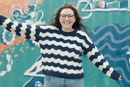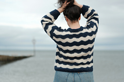 Tydes is a bottom-up, relaxed fit sweater and cardigan worked in a modified Feather and Fan lace pattern to create a wavy striped garment. Worked in a fluffy yarn, it knits up into a cosy, light, and easy-wearing fabric.
