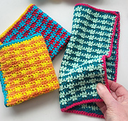 • Each dishcloth will use half ball of yarn in 2 colors (25g of each color)