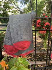 Stretchy cast-on, working in the round, 2x1 and 5x1 ribbing, reinforced heel, gusset shaping, wedge toe, and Kitchener Stitch.