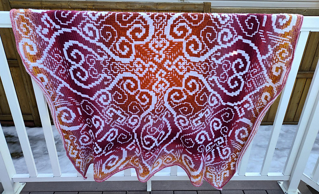 The pattern file contains information on yarn weight, gauge, a description of how to start the first 3 rows with pictures, a chart with all the written instructions for bottom-up in one file, centre-out (worked in the round), and chart for centre-out, each with different files respectively.