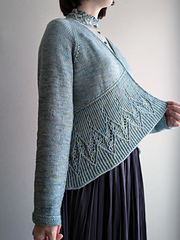 Haruno / 春野 - Spring field in Japanese - cardigan is a raglan jacket worked from the top down. The yoke is worked back and forth with raglan increases to the underarm.