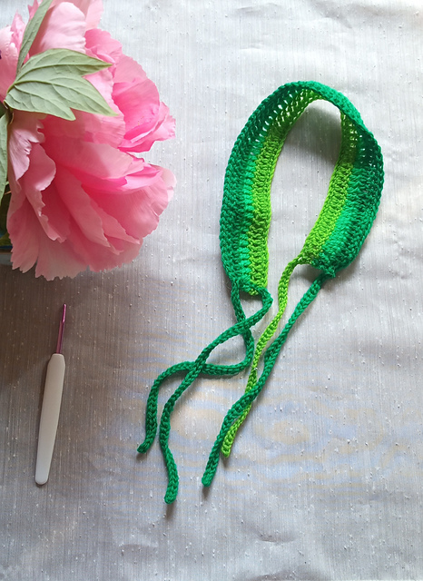The headband without the straps measures 17.5 inches (44cm) long