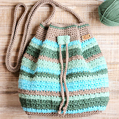 The Destination Drawstring Bag will go everywhere with you this spring and summer! It’s crocheted with sturdy, mercerized Lion Brand 24/7 Cotton yarn in a striped design using spike stitches for a beautiful texture. The bag features a crocheted drawstring, cord lock, and crossbody strap.