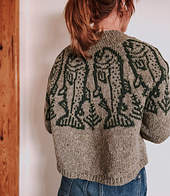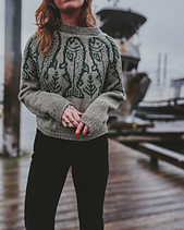 King Salmon is knit from the top down in the round featuring short row shaping for the back neck and a bold salmon yoke motif. The yoke is intentionally quite deep for this design (see schematic for full fit details) so I recommend an oversized fit for the intended look and comfort. Sizing down below the recommended positive ease is not recommended for this style.