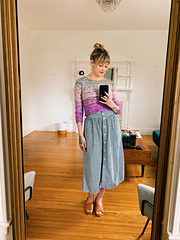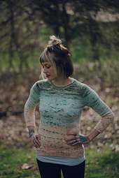 **Techniques to Indulge In:** Top down, seamless sweater construction, raglan shaping, stockinette stitch, garter stitch, COLOR FADING (MELTING), ribbing, working flat and in the round, casting on and binding off.