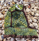 Keep away the cold with this unique balaclava: textured granny squares are seamed together and completed with a thick ribbed collar sporting a fun ruffled edge. Choose a wild variegated Rios colorway or opt for a more subtle heathered 220 Superwash colorway; the possibilities are endless!
