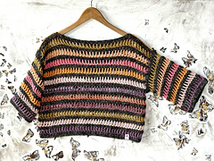 Das RINGELPIEZ Shirt ist ein stylishes kurzes und weites Oberteil, das leger über einem Top getragen werden kann. Fröhliche bunte Streifen aus Doppelstäbchen machen gute Laune und lassen sich einfach und flott häkeln. Dieses Shirt ist auch ein ideales Reste-Projekt.