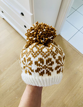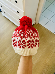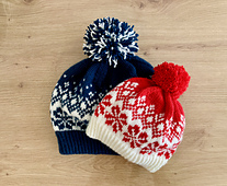 This snowflake hat is knit in the round using circular or double pointed needles. The construction is simple, it makes it easy to knit, even if you are not used to work with 2 colors.