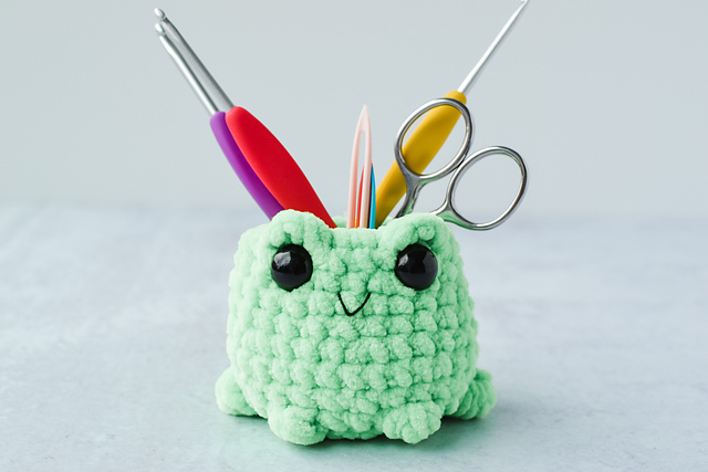 This Frog Desk Buddy crochet pattern is the perfect amigurumi project for froggy lovers.