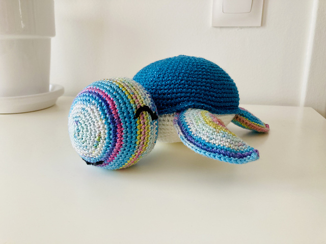 This cute sea turtle is made with 7 pieces : head, shell/stomach, 2 frong legs, 2 back legs and one tail. You can add a little bow on the head.