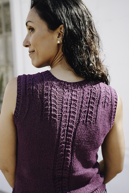 You can also double up a light fingering weight summer yarn to achieve the recommended gauge, or use a woolen yarn to make a great vest for the colder weather.