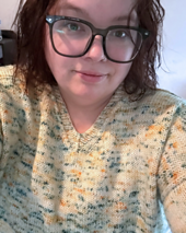 The Study Hour Sweater is a cute, slightly cropped, oversized pullover. It has V-neck shaping, a picked up collar, and is worked top down (flat for the armhole shaping, then in the round for the remainder of the body and sleeves) with a sloped drop shoulder construction. There is a high and low V neck option, with the high V neck sitting just below the hollow of your throat, and the low V neck sitting more around the middle of your sternum. The collar, cuffs and bottom edge have a 1x1 ribbed hem. The sweater is designed to fall to a slightly cropped level. The pattern is intended to be a boxy fit, but has options for waist shaping if desired, as well as adding extra length as needed for the body and sleeves. This is a size inclusive design, written for 10 sizes (32-68 inch / 80-170 cm finished bust, in 4 inch / 10 cm increments) and designed for 4-8 inches / 10-20 cm of positive ease.