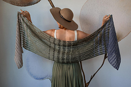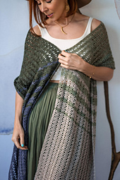 Trellis is a lightweight wrap with open stitchwork, the perfect piece to transition from one season to the next. This project uses basic stitches in an interesting combination to make a beginner project that looks more complex than it is. The color changes create a final product with a pretty and subtle color gradient.