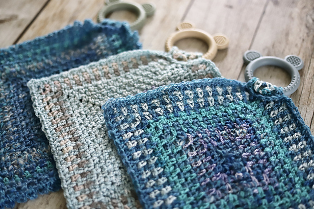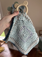 This sweet and simple lovey is perfect for using up scraps and wrapping little hands in handmade comfort. Crocheted in a soothing linen stitch and finished with a wooden or silicone teething ring, it’s the perfect blend of cozy and practical, ideal for gifting or making for your own little one.
