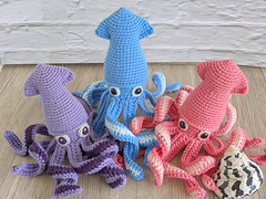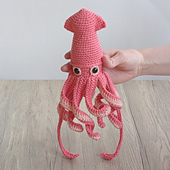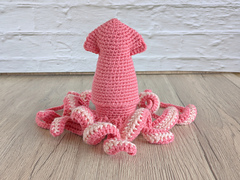 Size: Finished squid is about 12 inches long top to bottom (including arms) using worsted weight 4 yarn. You can make a larger or smaller finished product by using finer or bulkier yarn.